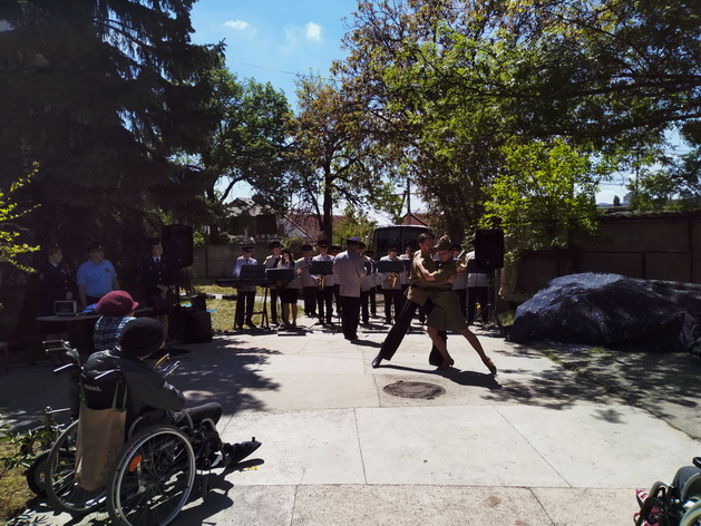 Ежегодно оркестр Культурного центра МВД по Республике Крым перед Днем Победы приезжает в пансионат, чтобы поздравить ветеранов и всех жителей пансионата. Этот год не стал исключением и 5 мая 2025 года зрители собрались во внутреннем дворике пансионата, чтобы насладиться творчеством артистов в погонах.