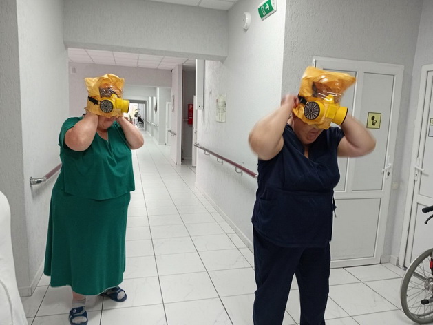 Сотрудники дежурной смены показали знание алгоритма действия при возникновении очага возгорания, умение в пользовании средствами защиты органов дыхания, первичными средствами пожаротушения, средствами эвакуации (носилки, коляски эвакуационные), оказание первой медицинской помощи пострадавшим.