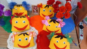 И изготавливать их было одно удовольствие! Не верите? Можете убедиться, глядя на наши фото. Теперь у нас есть целая бригада весёлых по-душечек, которыми можно украсить интерьер комнат, можно даже положить её на кровать и спать с ней в обнимку, а она будет делиться своим солнечным теплом.