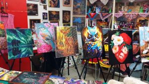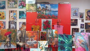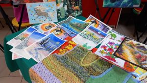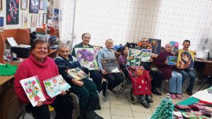 Посмотрев на фото, сделанные на нашей выставке, можете сами в этом убедиться. Особую радость и наслаждение красотой доставляют картины, выполненные в технике алмазной мозаики и картины по номерам. Кропотливая ежедневная работа принесла такие прекрасные плоды. И демонстрация этих картин на этот раз особенная, картины были выставлены на специальных мольбертах, которые нам подарили люди, любящие радовать других подарками и своим вниманием. Мы от всего сердца благодарим их, ведь теперь наши выставки стали более красивыми и наглядными.