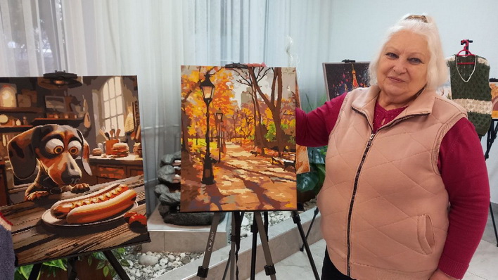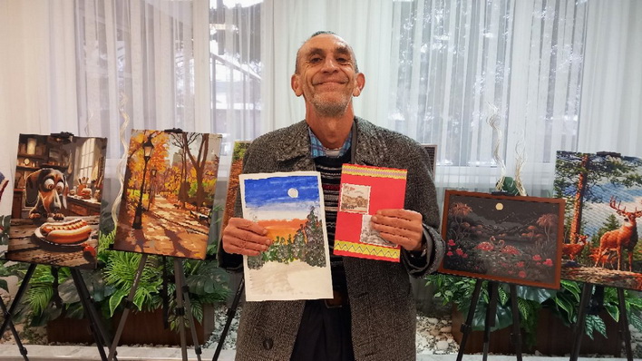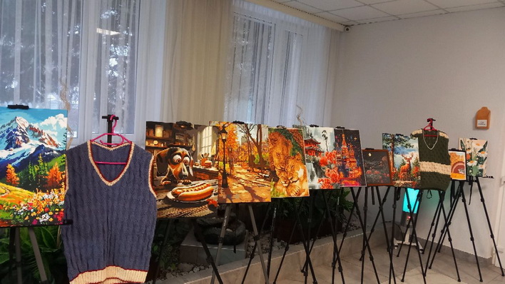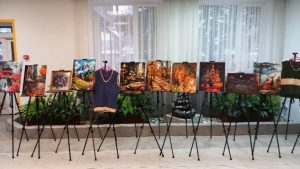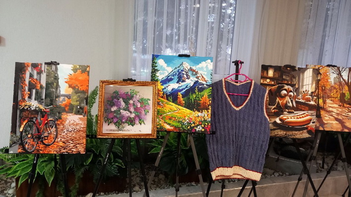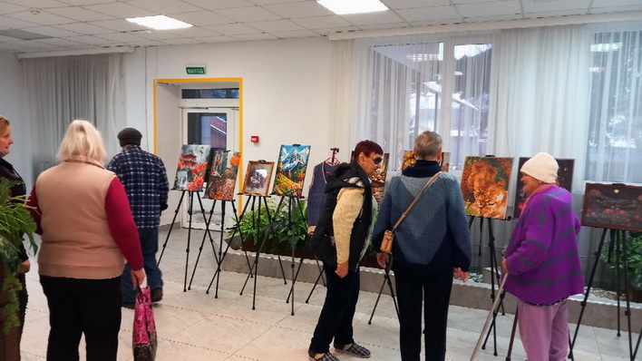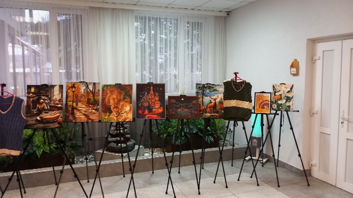 В фойе расположились прекрасные работы наших жителей, которые уже не представляют своей жизни без творчества. Благодаря чудесным и удобным мольбертам, каждая работа была особенно красива, и доступна к обозрению в течение всего дня.