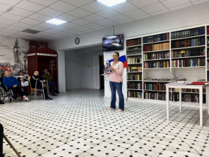 Психолог Елена Викторовна Джошкун рассказала о жизни и подвиге нашего земляка, легендарного летчика-истребителя Амет-хана Султана, дважды героя Советского Союза. Культорганизатор Ирина Владимировна Смирнова вместе с проживающими подготовила трогательные стихи, которые звучали с невероятной силой и болью в каждом слове.